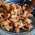 | Mu daet diao | หมูแดดเดียว | | Deep-fried strips of sun dried pork, here with sesame seeds. A spicy dipping sauce (very often Sriracha sauce) is almost always provided with this dish. | ||