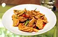 | Kaeng hangle | แกงฮังเล | | North | A Burmese influenced curry of stewed meat (usually pork), peanuts, dried chili peppers and tamarind juice but without coconut milk. Thin strips of fresh ginger are added in before serving. | |