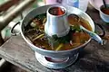 | Suki | สุกี้ | Thai suki | A Thai variant of the Chinese hot pot, it is mainly eaten as a meal on its own. |