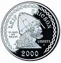 | $1 | Library of Congress dollar | Depicts an open book superimposed over the torch of learning | Architectural rendering of the dome on the Library of Congress' Jefferson building | Ag 90%, Cu 10% | Authorized: 500,000 (max) Uncirculated: 52,771 P Proof: 196,900 P | April 24, 2000 – December 31, 2000 | | |