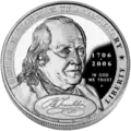 | $1 | Benjamin Franklin dollar (Founding Father) | An image of Benjamin Franklin | Taken from a 1776 Continental Dollar, featuring designs originally created by Benjamin Franklin | Ag 90%, Cu 10% | Authorized: 250,000 (max) Uncirculating: 58,000 P Proof: 142,000 P | 2006 | | |