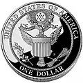 | $1 | U.S. Capitol Visitor Center dollar | Original Capitol superimposed on the image of today's Capitol building | Bald eagle cloaked in a banner inscribed "U.S. Capitol Visitor Center" | Ag 90%, Cu 10% | Authorized: 500,000 (max) Uncirculated: 66,636 P Proof: 143,793 P | 2001 | | |