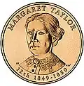 | Margaret Taylor medal | Margaret Taylor | A young Mrs. Taylor tending to a wounded soldier during the First Seminole War | Uncirculated: ---- (P) | 2009 | |