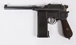 | Luger P08 pistol | Deutsche Waffen und Munitionsfabriken Mauser-Werke | 9×19mm Parabellum | Wehrmacht Luftwaffe Waffen-SS | The Luger P08's production was taken over by Mauser after World War I.[8] | [9] |