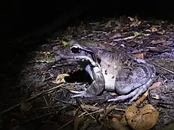 | Bufo marinus | Cane toad, giant neotropical toad, marine toad | Least concern. Introduced. Abundant. | |