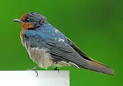 The family Hirundinidae is adapted to aerial feeding. They have a slender streamlined body, long pointed wings and a short bill with a wide gape. The feet are adapted to perching rather than walking, and the front toes are partially joined at the base.