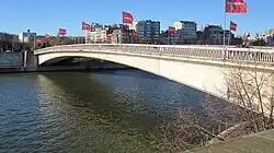 ![]() | Pont de Wandre | 168 m (551 ft) | 527 m (1,729 ft) | Cable-stayed Concrete box girder deck, concrete pylon 144+30+168 | 1989 | Herstal–Wandre 50°40′23.1″N 5°38′40.5″E / 50.673083°N 5.644583°E | Liège | [S 15] | |