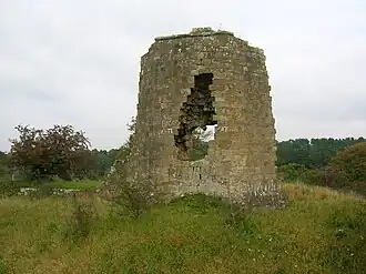 | Polkelly Castle | Tower | 14th century | Removed | Private | Near Polkelly Hall | Ruins used to build a road in the 1850s | |