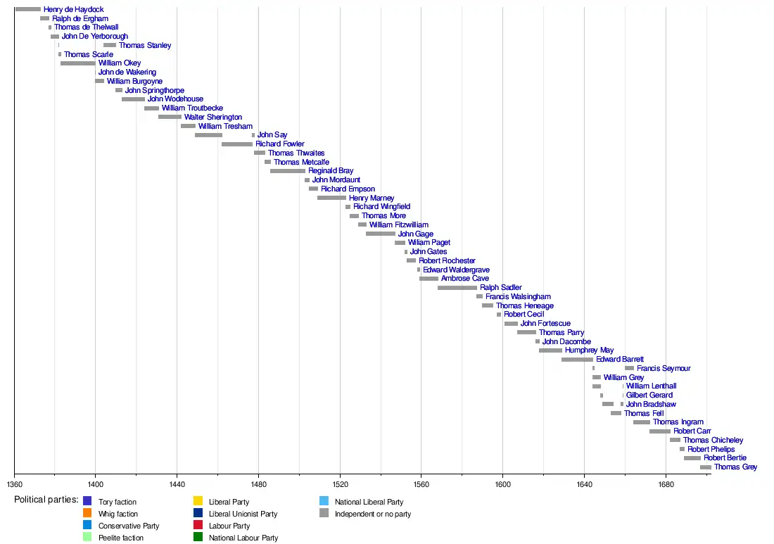 | Sir Henry Marney (c. 1447–1523) | 14 May 1509 | 14 April 1523 |