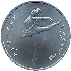 | 1991 | 5 rubles | Russian ballet | ballerina in the role of Odette | 9,000 | 999 | 7.87 | ![]() |