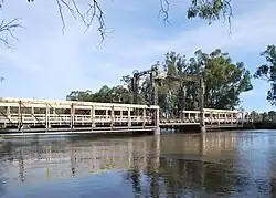 | Gonn Crossing Bridge | 35°30′13″S 143°57′24″E / 35.50361°S 143.95667°E | Murrabit to Ballbank | 1926 | 103 metres (338 ft) Lift-span road/rail bridge, opened as part of the Stony Crossing railway line; road only since the railway closed in 1964. | ||