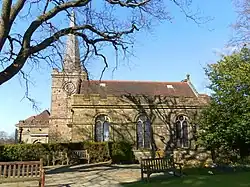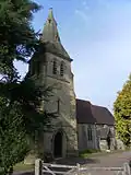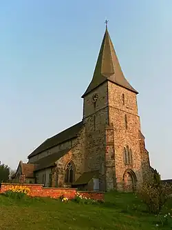 The 19th century was characterised by "an unprecedented upsurge" in the provision of new Anglican churches and the expansion of existing buildings, prompted by an increase in the competing attractions of Nonconformist denominations, a "quickening of religious feeling" in general and the huge increase in the population of towns.[52] In some cases vast rural parishes were subdivided; in others, chapels of ease were provided in outlying rural areas distant from their parish church. Victorian restoration of old churches took place across the district and was particularly extensive at Hailsham, Selmeston and Uckfield, where the buildings are now essentially 19th-century. The era of large-scale churchbuilding (as opposed to restoration) in Wealden began in the late Georgian era with the opening of a new church in Frant, built between 1819 and 1822.[53] The year 1836, just before Victoria's reign started, was significant: William Moseley was responsible for new churches in Forest Row and Hadlow Down that year (although the latter was greatly reworked in 1913);[53] and Danehill, a main-road village in Fletching parish, also received its first chapel of ease in 1836. The present church of 1892 is by Bodley and Garner.[54] It is the Victorian era that is most associated with the increase in churchbuilding activity, though.[55] A church in the outlying part of Withyham parish close to the growing town of Crowborough opened in 1839.[56] Four years later, a church was completed at Upper Dicker in Arlington parish;[57] and prolific architect Richard Cromwell Carpenter's church at Nutley dates from 1845.[58] The churches at Eridge and Tidebrook date from 1852[59] and 1856 respectively.[60] James Piers St Aubyn designed a chapel of ease at Cross-in-Hand, the main settlement in Waldron parish, in 1863–64.[54] A former school was converted into a chapel of ease in Mark Cross, part of Rotherfield parish, in 1873, although it was soon granted its own parish.[61][62] A year later, work began on a church for the rapidly growing village of Polegate,[63] and a church was built to serve the village of Horam in 1890.[64] Endowments by rich benefactors allowed churches to be built at High Hurstwood (1872)[64] and Hammerwood (1880).[65] The wealthy Vicar of Brighton Arthur Wagner, who had a house in Buxted and established a convent there, also paid for the construction of a second church for the village in 1885–86.[66] Fairwarp's church, designed in 1881 by Major Rohde Hawkins, was substantially extended in the 20th century, funded by the Eckstein baronets.[67] Churches continued to be built throughout the 20th century. Examples include Blackham (1902),[61] Jarvis Brook (1906),[68] Colemans Hatch (1913, by Arthur Blomfield),[69] Heathfield town (1915),[70] Bodle Street Green (1923, replacing a fire-damaged one),[71] Stone Cross (1924; a chapel of ease in Westham parish),[72] Alderbrook (1957),[73] Broad Oak (1959),[70] Lower Willingdon (1962)[74] and Pevensey Bay (1968, replacing one of 1881).[75] In the east of Uckfield a tin tabernacle erected in 1904 was replaced by a combined church and sheltered housing development in 1971.[76]