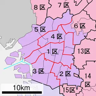 | 1st district[changed 1] | Fukuoka, wards of Hakata-ku and part of Higashi-ku | 431,653 | Takahiro Inoue[14] | LDP | |