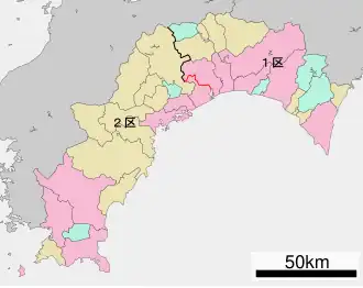 | 2nd district[changed 2][changed 3] | Cities of Shimanto, Susaki, Sukumo and Tosa, Tosashimizu, and part of Kōchi | 284,670 | Masanao Ozaki[15] | LDP |