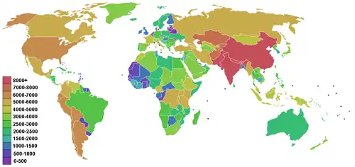 - ^ China has the broadest range of surface elevations of any country with a span of 9,004 m (29,541 ft).