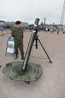 | 120 KRH 92 120 KRH 92 76 | Mortar | 698 | Standard issue Finnish Tampella lightweight heavy infantry mortar. Old 120 KRH 40 were withdrawn from service and scrapped when the 120 KRH 92 were acquired.[8]: 216–217 | |||
