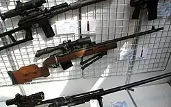Assault rifles Name Photo Origin Cartridge Notes AK-47 Soviet Union 7.62×39mm M43/M67 30-round magazine, used mostly by National Defence Force. AK-103 Russia 7.62×39mm 30-round detachable box magazine. Captured from rebels, used by the Syrian Army.[ 34] [ 35] AKM / AKMS Soviet Union 7.62×39mm M43 30-round magazine, main service rifle. 75,000-80,000 units. MPi-KM [ 36] East Germany 7.62×39mm M43 30-round magazine, moderate usage by Syrian Army. PM md. 63 [ 36] Socialist Republic of Romania 7.62×39mm 30-round detachable box magazine. Type 56 People's Republic of China 7.62×39mm M43 30-round magazine, used mostly by National Defence Forces . 12,000 units.[ 37] Type 58 / Type 68 North Korea Ba'athist Syria 7.62×39mm 30-round magazine. Supplied by North Korea before the war.[ 38] Produced under license in Syria by EID.[ 39] [ 40] AK-74 AKS-74 Soviet Union 5.45×39mm 30-round magazine, moderate usage. Most of them given to the Syrian Army by Russian forces.[ 24] AK-74M Russia 5.45×39mm M74 30-round magazine, widely used by Airborne Special Forces and regular military units.[ 34] [ 41] Also AK-74M UUK variant.[ 42] AK-9 Russia 9×39mm 20-round detachable box magazine. Used by the Syrian Army and Police . AK-12 Russia 5.45×39mm 30-round detachable box magazine. Supplied by Russia in 2023. Used by 25th SMF Division.[ 43] Type 81 People's Republic of China 7.62×39mm 30-round magazine, captured from militants.[ 44] Norinco CQ People's Republic of China 5.56×45mm NATO 30-round box magazine, captured from militants.[ 45] Including Iranian Sayyad 5.56 variant.[ 46] Zastava M70 Yugoslavia 7.62×39mm M43 30-round magazine, moderate usage by Syrian Army. FB Tantal Polish People's Republic 5.45×39mm 30-round detachable box magazine. Limited usage, captured from rebels.[ 47] vz. 58 [ 36] Czechoslovak Socialist Republic 7.62×39mm M43 30-round magazine. AK-63 [ 36] Hungarian People's Republic 7.62×39mm 10, 20 or 30-round magazine. Captured from militants. AMD-65 [ 48] Hungarian People's Republic 7.62×39mm M43 30-round magazine. VHS Croatia 5.56×45mm NATO 30-round magazine. Supplied by Iraq in 2013.[ 49] FAMAS France 5.56×45mm NATO 25-round detachable box magazine. FAMAS F1 variant. Moderate usage by Syrian Army.[ 50] M16A1 M16A2 United States 5.56×45mm NATO 20, 30, 40-round detachable STANAG magazine . Captured from dead militants and in one instance defecting fighters.[ 51] Moderate usage. Used by special forces.[ 52] [ 53]