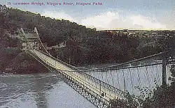 NY 18E was a short spur assigned in the 1930s to connect NY 18 (now NY 18F) to the original Queenston–Lewiston Bridge in Lewiston.[7] It was removed in the early 1960s when the original bridge to Queenston was replaced with the modern Lewiston–Queenston Bridge a short distance upstream.[19][20]