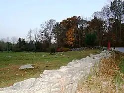 - March Route of Rochambeau's Army: Plainfield Pike (41°40′54″N 71°51′50″W / 41.68167°N 71.86389°W) is a 3.6-mile-long road segment in Plainfield and Sterling, Connecticut that is a portion of the historic march route. It was listed on the National Register of Historic Places in 2003.[2] It is a portion of Connecticut Route 14A, locally known as Plainfield Pike, which is level in the eastern part but generally hilly with curves. Along the route is open land including pasture and cornfields, wooded areas, and streams including Ekonk Brook. It is bordered by stone walls about 50 feet apart on both sides for most of the way. The only concentration of houses as of 2002 was of 18th- and 19th-century homes in the Sterling Hill Historic District.[3] The roadway was poor and caused difficulty for the artillery and baggage trains. The segment includes views of countryside evocative of how the land would have been in 1781 for the troops marching through.[3]