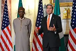 Buhari held talks with various high level US officials and on 20 July had a private meeting with Barack Obama. Buhari sought US help in the combat against terrorism in Nigeria and asked for further military assistance in terms of technology and intelligence.[7][8]