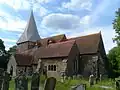 | Holy Trinity Church (More images) | | Hurst Green 51°01′13″N 0°28′09″E / 51.0202°N 0.4691°E | Anglican | – | This red-brick church lacks a tower or steeple; instead there is a two-stage bellcote at the west end of the roof. The Early English Gothic Revival building by Lacy W. Ridge also has some stone dressings, one transept and lancet windows. | [12][268] |
