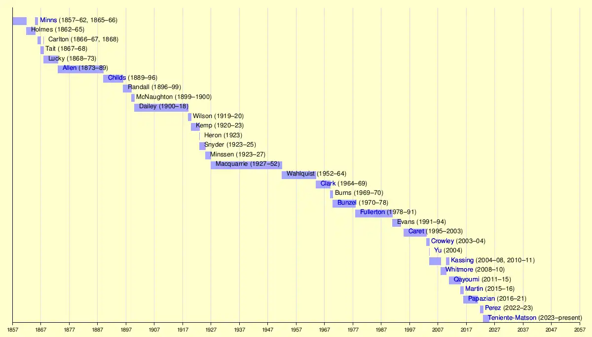 | 30 | | Mary A. Papazian (born 1959) | 2016–2021 (5 years) |