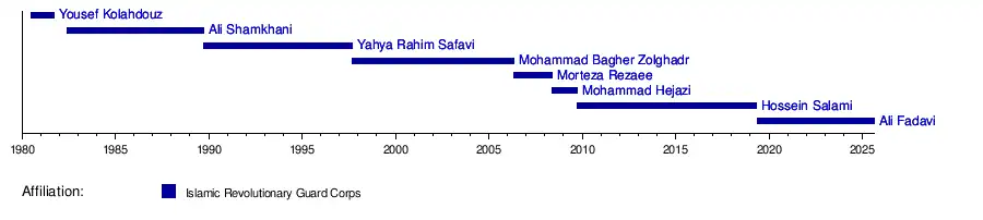 | 7 | Brigadier general Hossein Salami (1960–2025) | 4 October 2009 | 21 April 2019 | 9 years, 199 days | – | |