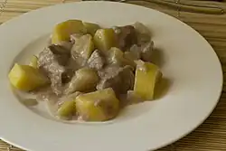 | Cream stew |   | Japan | Various | Cream stew is a Japanese Yōshoku dish consisting of meat, usually chicken or pork, and mixed vegetables, onion, carrot, potato and cabbage, cooked in thick white roux. |