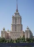 [13]. Other significant examples include the Hotel Ukraina and the Ministry of Foreign Affairs building. Their distinctive architectural style, combining Russian Baroque and Gothic elements with socialist realism, remains prominent in Moscow's skyline.