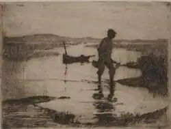 | The Punter | Online image[49] | etching on laid paper/print | 1927 | 11.8 in x 15.8 in (30 cm x 40.1 cm) or 7.8 in x 11.9 in (19.8 cm x 30.2 cm) | Cleveland Museum of Art, Cleveland, OH; Metropolitan Museum of Art, New York, NY; Memorial Art Gallery, University of Rochester, Rochester, NY; Currier Museum of Art, Manchester, NH | Scene: male figure standing in punt in waterscape. |