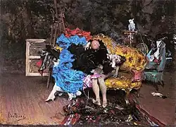 Giovanni Boldini was an Italian genre and portrait painter who lived and worked in Paris for most of his career. According to a 1933 article in Time magazine, he was known as the "Master of Swish" because of his flowing style of painting.[1]