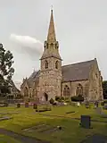 | Church of Our Lady and St Hubert and presbytery 53°47′07″N 2°24′02″W / 53.78526°N 2.40068°W | ![]() | 1858–59 | A Roman Catholic church by E. W. Pugin in the style of about 1300. It is in sandstone with slate roofs, and consists of a nave, transeptal aisles, a chancel with a three-sided apse and a Lady Chapel, and a west steeple. The tower has three stages, with a stair turret, a doorway, a niche containing a statue. On the tower is a splay spire with crocketed gablets. The presbytery, at the northwest corner is also by Pugin, and is in a similar style.[14][15] | II* |