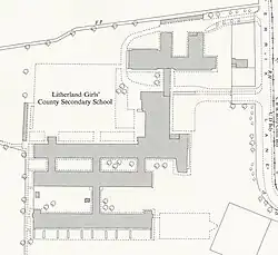 The foundations were laid in July 1947.[6] Originally scheduled to be open by December 1947 as a 450 intake girls-only secondary modern, the school included an assembly hall, dining room, kitchen and staff blocks, among 10 classrooms facing south-east. Special mention was given to the stage and lighting equipment, which was described as being capable of "staging plays by repertory companies".[7] The boiler house was situated beneath the stage and was described as being "one of the most up to date in the country" upon the school's opening.[5]