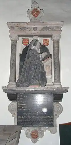A mural monument to Elizabeth Peryam (1571–1635), heiress of Little Fulford, and wife of Sir Robert Bassett (1574–1641) of Heanton Punchardon, North Devon, MP for Plymouth in 1593, is situated on the east wall of the Basset Chapel in Heanton Punchardon Church. She was one of the four daughters and co-heiresses of Sir William Peryam (1534–1604), Lord Chief Baron of the Exchequer, by his second wife Anne Parker, daughter of John Parker of North Molton, Devon, ancestor of the Earls of Morley of Saltram House near Plymouth. She bore her husband two sons and four daughters,[8] amongst whom was Colonel Arthur Basset, MP, who erected the monument. It is inscribed in Latin as follows: