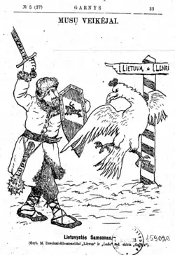 Initially, there were hopes that the newspaper would become a neutral place for the Lithuanian–Polish debate and would foster an understanding between the two nations.[29] However, it quickly became apparent that the newspaper would advocate the Lithuanian positions. As a result, it was harshly criticized in the Polish press, particularly in Kurier Wileński, Gazeta Codzienna, Dziennik Petersburski and other periodicals published by the Polish National Democracy (Endecja). They did not consider the newspaper and its articles worthy of serious discussion and treated them as silly declarations.[30]
