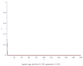 First, when the parameter r = 0, , regardless of the initial value . In other words, the trajectory of the logistic map when a = 0 is a trajectory in which all values after the initial value are 0, so there is not much to investigate in this case.