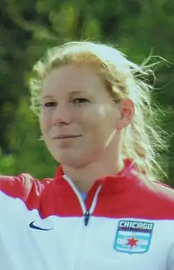 After the folding of the WPS in early 2012, she played for the Chicago Red Stars in Women's Premier Soccer League Elite, appearing in ten games and scoring five goals.[7] On August 8, 2012, she joined AIK Fotboll Dam in the Swedish Damallsvenskan.[8]