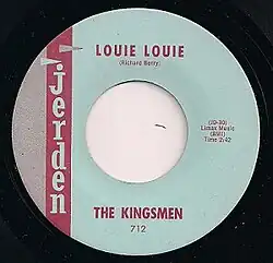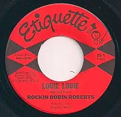 Released as a single on the band's own label, Etiquette, in early 1961, it became a huge hit locally, charting at No. 1 on Seattle's KJR and establishing "Louie Louie" as "the signature riff of Northwest rock 'n' roll".[75] It also picked up play across the border in Vancouver, British Columbia, appearing in the top 40 of the CFUN chart. The popularity of the Roberts release effectively buried another "reasonably close to the Richard Berry/Ron Holden arrangement"[47] version put out at about the same time by Little Bill Englehardt (Topaz T-1305).[74]
