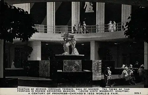 She is most known for the sculpture she designed for the Fountain of Science at the Century of Progress 1933-1934 World's Fair in Chicago, located in front of the main entrance to the Hall of Science. The sculpture, known as Science Advancing Mankind, depicted an abstract robot form nudging a male and female figure forward, which exemplified the fair's themes of scientific and technological progress. After the fair, in 1935, she donated the sculpture to Joliet Township High School, now Joliet Central High School, where students dubbed it the "Steelman" and it served as the school team name and mascot.[4]