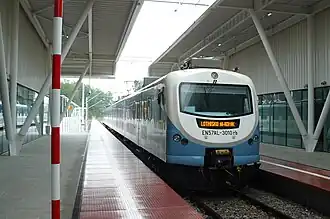 In 2013, the station was served by Regio trains operated by Przewozy Regionalne on the Lublin Główny–Lublin Airport route.[15] Initially, plans were made to use railbuses to service the line before the decision to electrify it. With this change, modernized electric multiple units of the EN57AL series were deployed.[8][16] At the time of the station's inauguration, five daily connections were financed by the Lublin Voivodeship's local government.[17] However, the train schedule was not aligned with flight schedules from the outset.[10]
