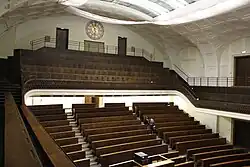 The Aula was not destroyed during World War II and, thus, is one of few usable pre war venues in Munich. The Aula was used for the first performances of concerts after the war. Furthermore, it was venue for the constituent assembly of the state of Bavaria, where the current Bavarian constitution was enacted.[10]