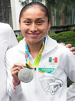 María Guadalupe then won the Race Walking World Cup in Rome and was regarded as one of the favorites to win the Olympic Games,[6] and won silver, becoming the first female Mexican race walker to step on the Olympic podium.[7]
