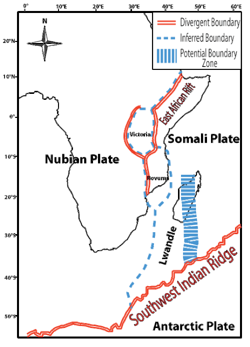- Northern boundary – Bordering the Lwandle plate to the north is the Rovuma plate.[5]