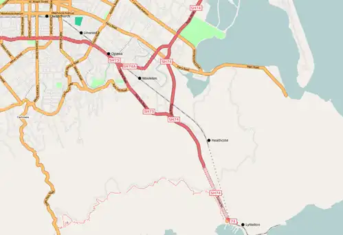 A major improvement in operations to Lyttelton was heralded by the inauguration of electrification on 14 February 1929, when the first electric locomotive-hauled passenger service arrived from Christchurch. That was the first suburban electric train service in the country, and its implementation was based on the successful electrification of the Otira Tunnel in 1923.[11] Introduction of the electric services was popular with both train crews and passengers, eliminating the nuisance of smoke in the tunnel they had previously endured. For much of their 41 years of service, the electric locomotives provided 20 daily return services to Lyttelton.[12] The deteriorating economics of their operation, and the need to replace the ageing locomotivesm, led to the de-electrification of the line in 1970.[11]
