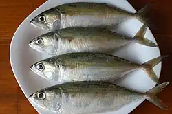 Seafood is a staple for many Konkan coastal communities and is popular in other parts of the state too.[54] Most of the recipes are based on marine fish, prawns and crab. A distinct Malvani cuisine of mainly seafood dishes is popular. Popular fish varieties include Bombay duck,[55] pomfret, bangda, Rawas, and surmai (kingfish).[56]These fish are used fresh as well as dried in areas around Mumbai.[57] Seafood recipes are prepared in different ways such as curried, Pan frying, or steaming in banana leaves.[58]