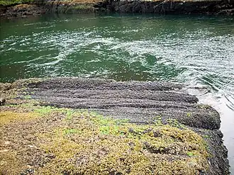 The way to determine the direction of the tidal flow at the narrows is to observe the direction in which the tide is flowing. If the tidal flow is heading toward the Jervis Inlet then the tide is going out (low tide). But if the flow is moving toward Princess Louisa Inlet the tide it is coming in (high tide).[1]