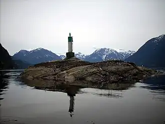 The entrance is large enough to allow marine traffic through. The narrow passage is defined by Malibu Isle and a System B type Lateral navigation beacon on the Jervis Inlet side and Malibu and the mainland on the Princess Louisa Inlet side.