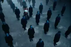 The music video for "Mamushi", directed by Kevin "Onda" Leyva premiered on August 9, 2024, and was filmed in part at both Tsurumaki Onsen Jinya and Engaku-ji Temple. The video takes place at a bathhouse where Megan lures male gangsters into her den before transforming into a gigantic mamushi snake and killing them. Yuki Chiba who is seen working at the bathhouse then cleans up and paints her victims blue, before they are then revived into an army of the dead that follow Megan's every word. The scene with the blue-faced group of men standing around Megan is a nod to the 1990 film, Dreams by Japanese filmmaker Akira Kurosawa. Multiple scenes from the music video also take inspiration from other films such as the 2001 film Rush Hour 2,[9] as well as feature multiple Japanese actors, most notably Shō Kasamatsu who is the first of the men to be killed by Megan.[10][11]