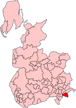 The constituency comprised an area bounded on the west by the city of Manchester and to the east and south by the county boundary with Cheshire.