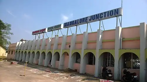 Mangalore Junction railway station (formerly Kankanadi railway station(station code: MAJN[5]) is an NSG–3 category Indian railway station in Palakkad railway division of Southern Railway zone.[6] It is an important railway station connecting Konkan, Western Ghat (Mangalore Hassan Mysore line) and Malabar railways and is also the gateway to the port city of Mangalore located at Darbar Hill, Padil, Mangalore, 575007. The station is a junction interconnecting Mangalore Central railway station with Kerala in the south, Maharashtra/Goa and Mangalore Sea Port in the north and Bangalore–Chennai in the east. It is the busiest railway junction in the area, as all north- and southbound trains touch Mangalore through this station.